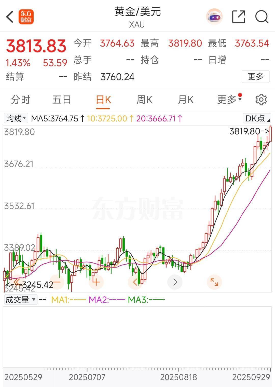 9月29日,国际金价再创新高,现货黄金盘中突破3800美元/盎司,一度涨至3819.80美元/盎司。